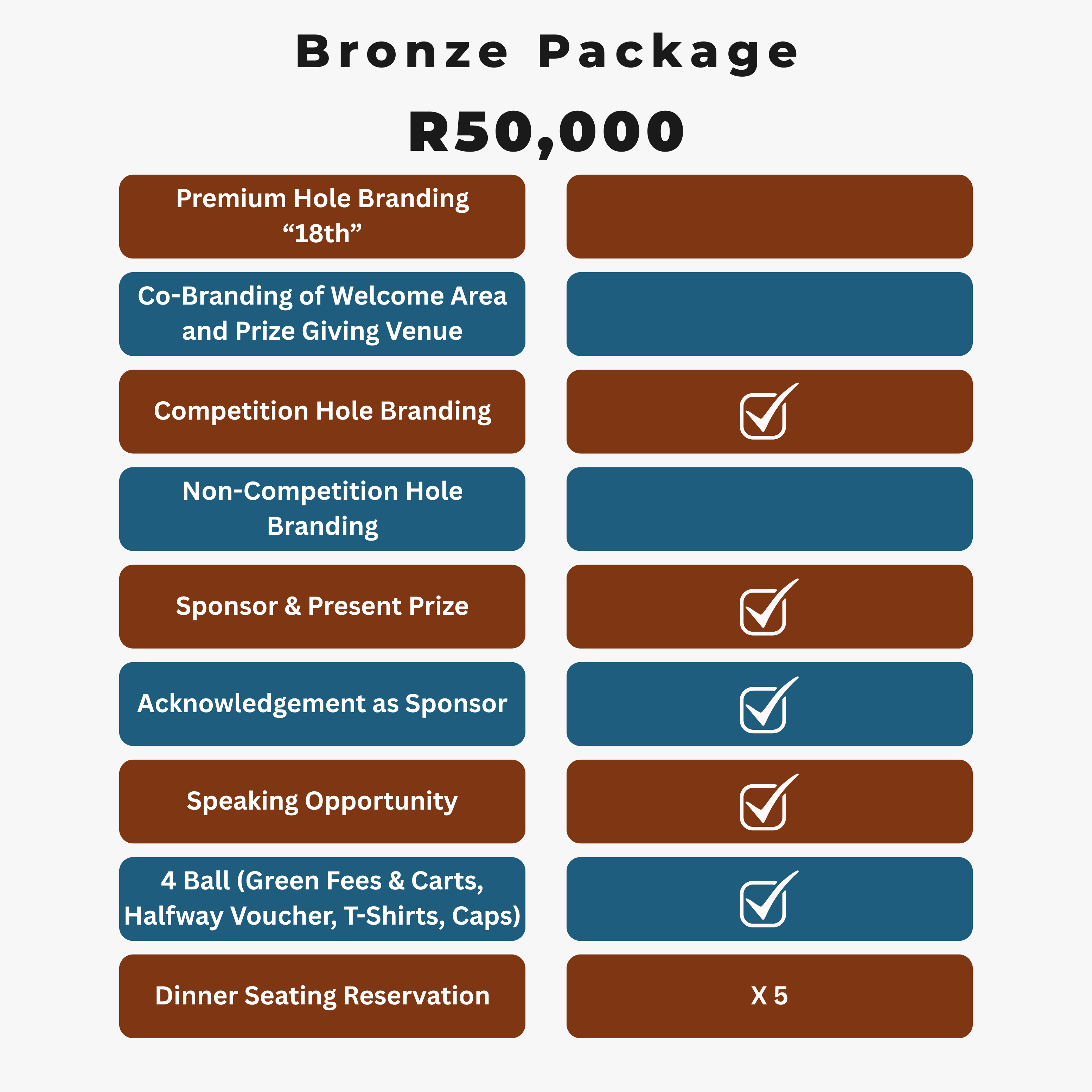 THE GOLF DAY BRONZE SPONSORSHIP CONSISTS OF: